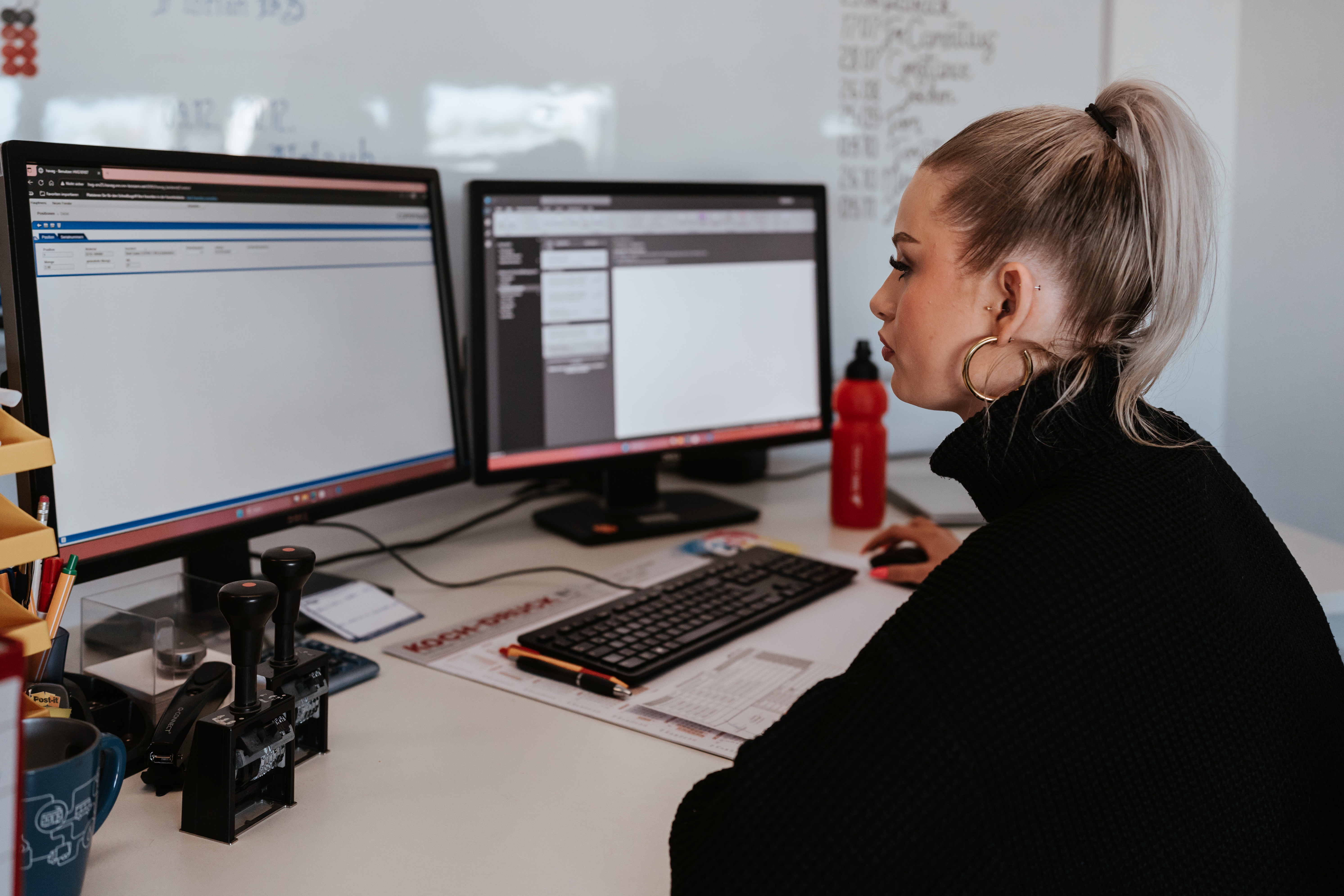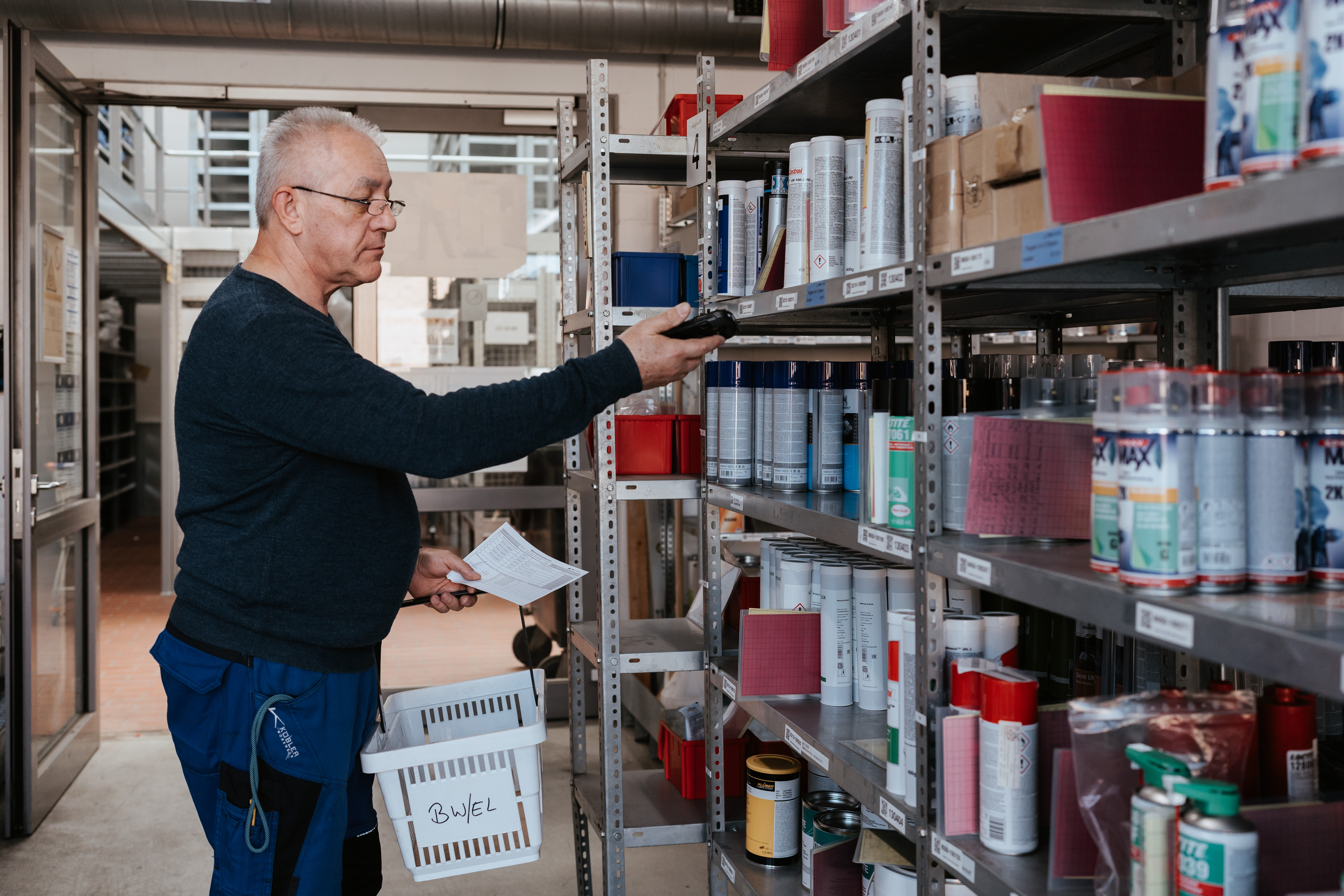 The Rosengarten external warehouse, with nearly 1,000 SKUs, followed the same principle. Red demand cards signaled low stock levels and triggered manually coordinated stock transfers. Inventory data was always only as current as the most recently entered card — a typical challenge of paper-based warehouse systems.