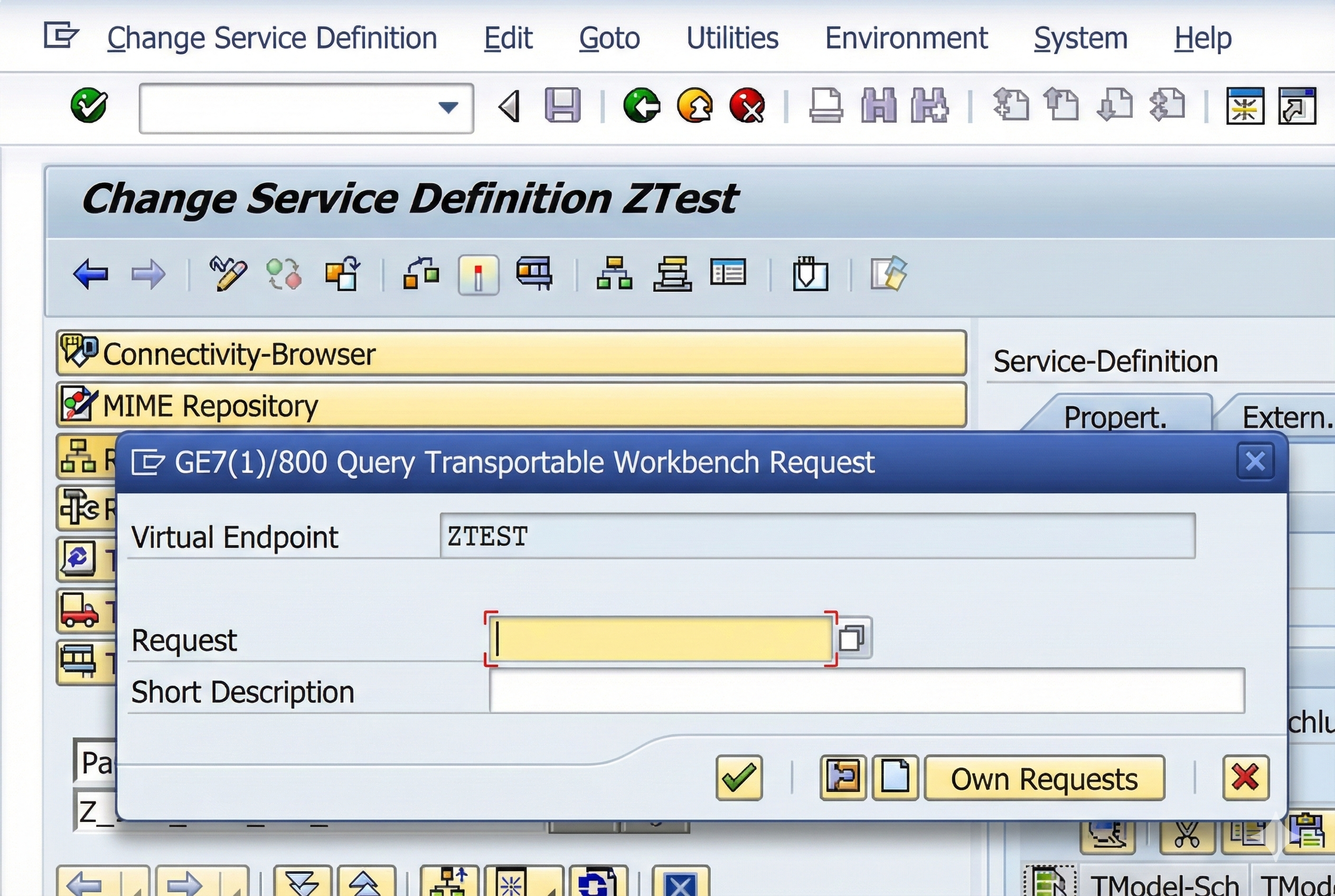 The definition of the web service takes place in the Object Explorer. This can be opened via transaction SE80. After selecting a target package in the Repository Browser, the wizard for creating the web service can be started via the context menu "Create > Enterprise Service".