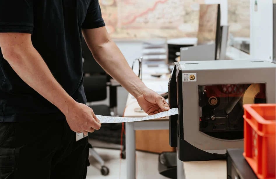 - Previously, an employee would take the delivery note and check the goods. Then, they had to go to a PC, open the purchase orders, and post everything. Finally, the SAP labels were printed. The employee had to go get these labels and bring them back to the goods. This was done separately for each material on a pallet and included a walk of up to 50 meters due to the warehouse layout. It was a time-consuming procedure.